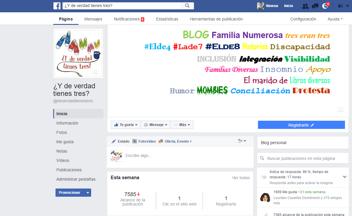 Si se te da bien una red en concreto, sientes predilección por ella, poténciala porque de ahí llegará tu público. A mí Facebook es quien me da las alegrías. Mi página refleja una mezcla perfecta del blog, de mis inquietudes y parte de mi persona.