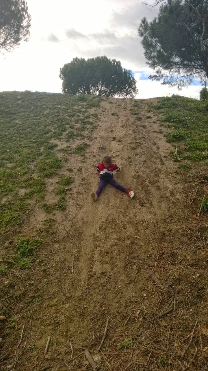 – «Mami, por aquí es por donde papá nos trae con la perra. Y Rodri se cae todos los días rodando»