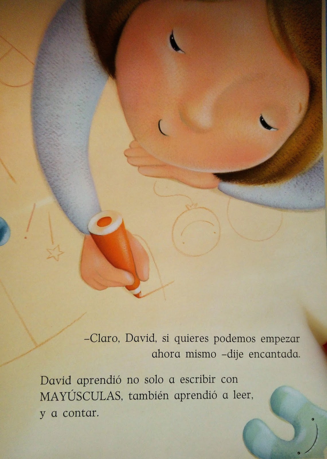 David es un niño y como tal hace cosas de niño: crece, ríe, pinta, canta, ve dibujos animados…