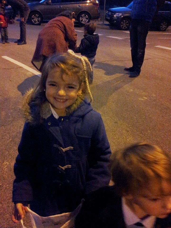 La de cinco y pico disfrutó a lo grande, cogiendo caramelos (la primera vez), saludando a las carrozas, y sobre todo cuando vio a sus Majestades llegar. ¡Qué carita por favor!, se me saltaban los lagrimones. Ahí la tenías, buscando en la carroza de los regalos el que llevaba su nombre, o alucinada con la estrella brillante brillante…