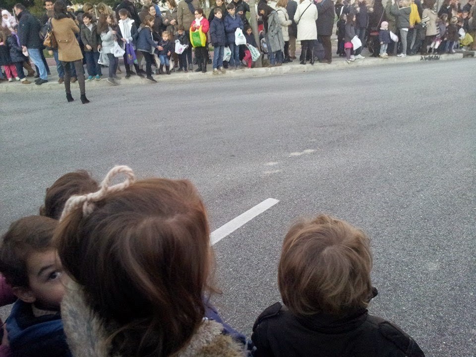 Pues ahí estábamos en primera fila, bueno en segunda, pero a base de meter a los niños entre las piernas de las señoras y gritar «estoy aquí cariño, no te asustes que mami está detrás», conseguimos hacernos con esa ansiada posición, mal que le pese a algunas. Sí, te digo a tí, la que me pisaba los caramelos del niño como quien no quiere la cosa.