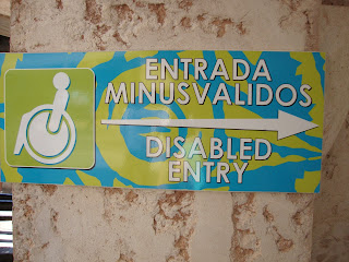 Los carteles e indicadores aún son un reducto de este tipo de etiquetas que actualmente no son bien vistas, y que necesitan modificarse, cambiando el término «minusválidos«, ya en desuso por un «Acceso personas con discapacidad«, por ejemplo. Las traducciones literales tampoco benefician a la comunicación, como ocurre en algunos carteles en los que discapacidad se queda en un «discapacitación»